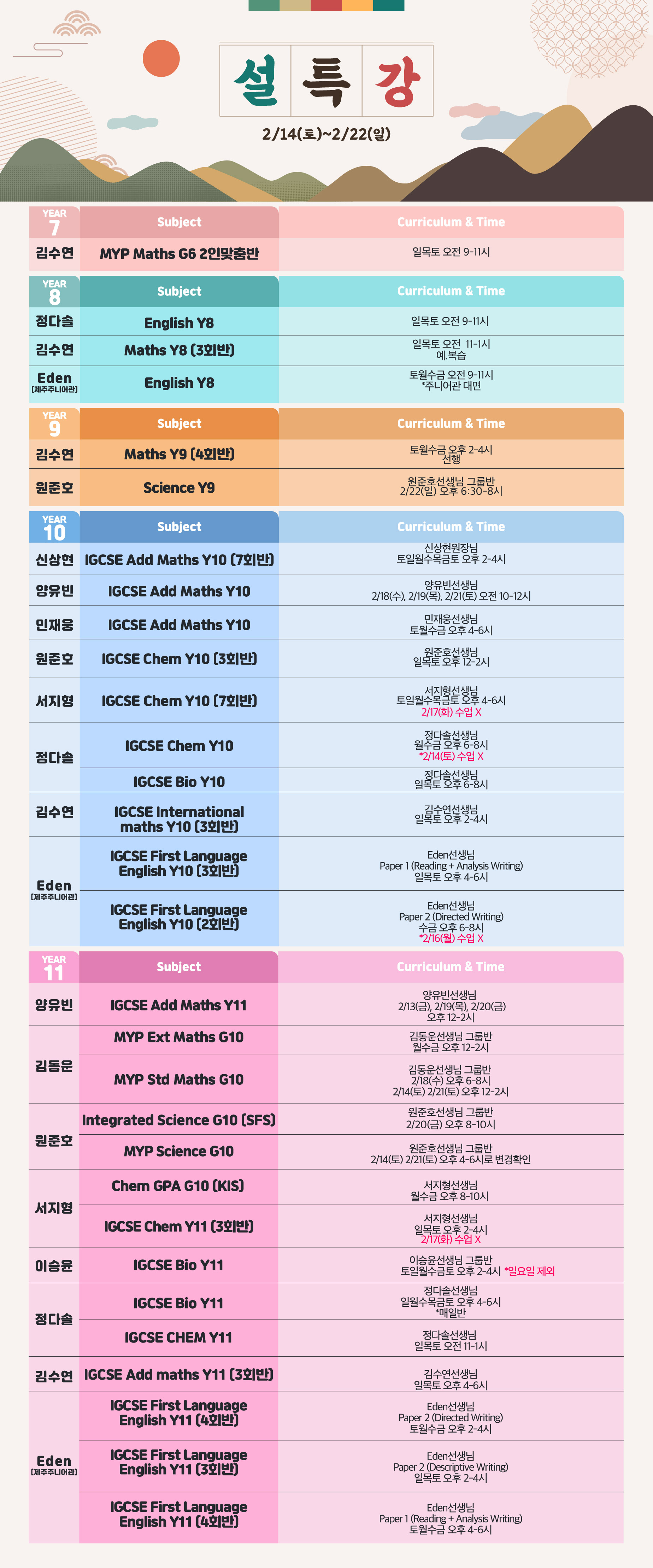 2026 설특강 스케줄